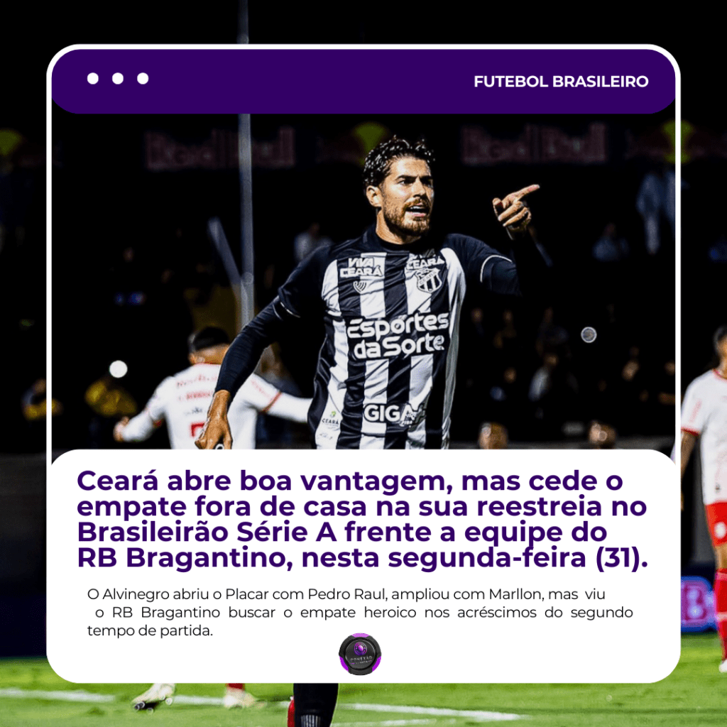 Na noite desta segunda-feira (31), o Ceará reestreou no Campeonato Brasileiro Série A enfrentando o RB Bragantino no estádio Nabi Abi Chedid, em Bragança Paulista. O Vozão começou a partida de forma intensa, dominando as ações e sendo eficiente no ataque. Logo aos 12 minutos, Pedro Raul aproveitou a oportunidade e abriu o placar para o time cearense. A equipe seguiu pressionando e, aos 23 minutos, Marllon ampliou a vantagem, deixando o Ceará em uma posição confortável na partida.