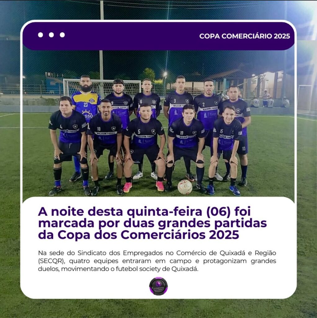A sede do Sindicato dos Empregados no Comércio de Quixadá e Região (SECQR) foi palco de mais uma rodada eletrizante da Copa dos Comerciários 2025, com dois jogos cheios de emoção e competitividade. Ambas as partidas terminaram com o mesmo placar, 4×1, e mostraram a força das equipes vencedoras, que se destacaram pelo bom desempenho dentro de campo. A competição continua aquecida, prometendo mais disputas acirradas para as próximas rodadas.