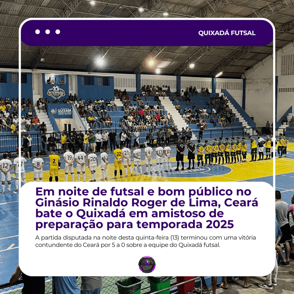 Na noite desta quinta-feira (13), o Ceará Futsal teve uma atuação impecável e derrotou o Quixadá Futsal por 5 a 0 em um amistoso no Ginásio Ronaldo Roger de Lima, em Quixadá. A partida, que estava cercada de grandes expectativas, foi marcada pela superioridade do time cearense, que controlou o jogo do início ao fim e impôs uma vitória convincente.