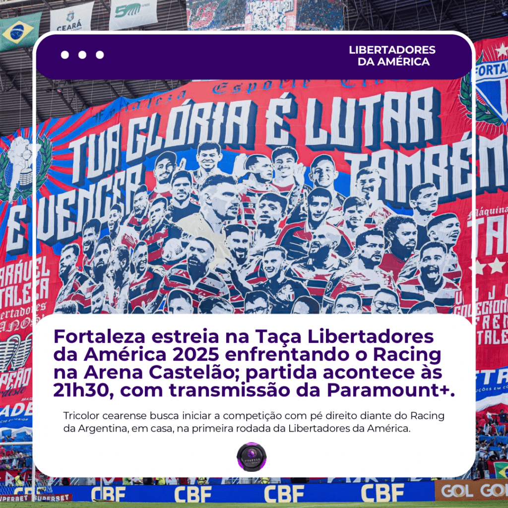 O Fortaleza dá o pontapé inicial em sua campanha na Copa Libertadores da América 2025 nesta terça-feira (1º), enfrentando o Racing Club, da Argentina, às 21h30, na Arena Castelão. O jogo marca a estreia do Tricolor do Pici no Grupo E, que também conta com Colo-Colo, do Chile, e Atlético Bucaramanga, da Colômbia.