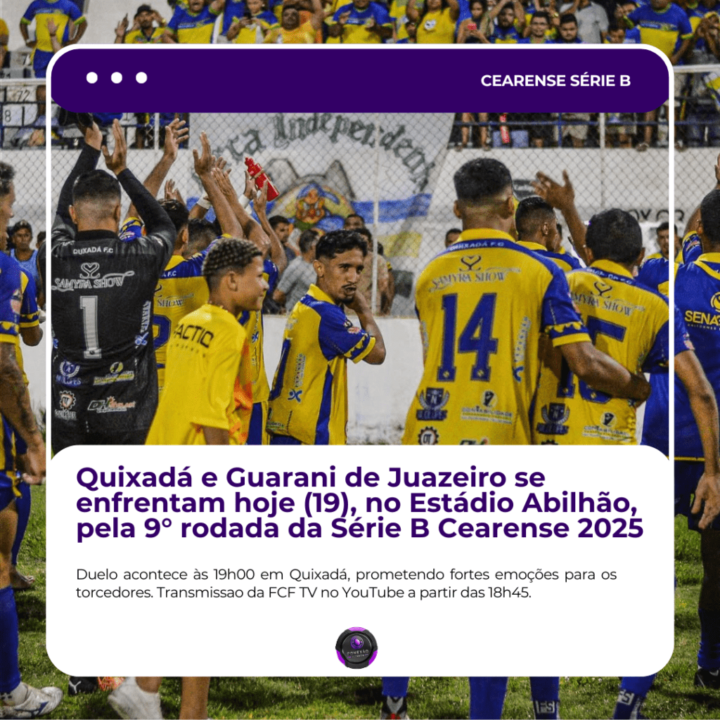 Quixadá e Guarani de Juazeiro se enfrentam nesta quarta-feira (19), às 19h00, no Estádio Abilhão, em um confronto decisivo pela 9ª rodada da Série B do Campeonato Cearense. Este será o último compromisso do Canarinho do Sertão na primeira fase da competição, com a equipe liderando o Grupo B e dependendo apenas de si para confirmar a primeira colocação.